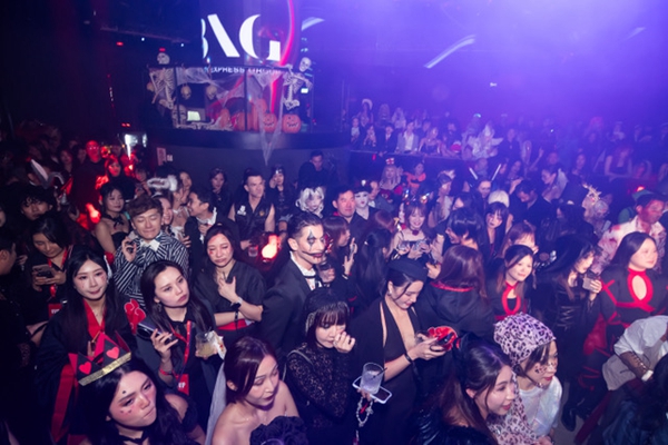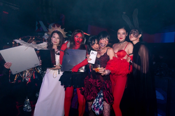 低音线穿透镜面墙壁;水晶酒杯碰撞声响起,闪亮的亮片身影在猩红的灯光下闪烁。香槟如水般涌流,著名厨师精心准备的美食选择让嘉宾们整晚沉浸其中。场地本身成为一个沉浸式幻想——装饰着令人毛骨悚然的万圣节装饰、发光的LED装置和瞬间点燃的烟火,闪烁着金色和猩红色的光芒。